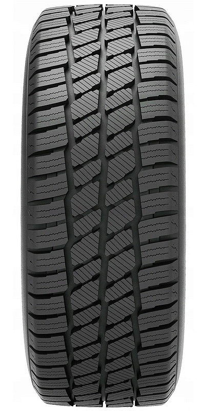 - Открытый симметричный протектор с широкой окружной дренажной канавкой и множественными ламелями для эффективного отвода воды, грязи и снега, а также улучшения тяги на скользкой поверхности.