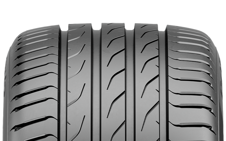 Продольные канавки эффективно отводят воду из пятна контакта, снижая риск аквапланирования и повышая безопасность в дождливую погоду. Жёсткие плечевые зоны улучшают устойчивость в поворотах и делают управление более точным, что особенно важно при движении на высокой скорости.
